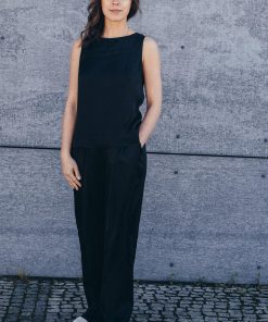 Echo spodnie z wiskozowej satyny z szerokimi nogawkami – czarne